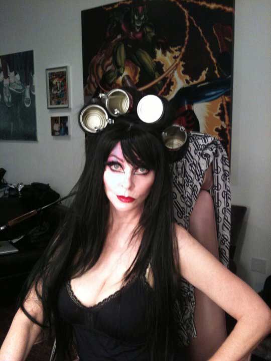 Delamorte: That is so cool. . I wish I had that skill. but I think my wit is pretty fast. So this is something I always. . al-wa-ys wanted to know! When you were thinking of a way to better your career, do you remember the exact moment when the Mistress Of The Dark popped into your mind? Was it like electricity coarsing through you? I was always so curious about that!