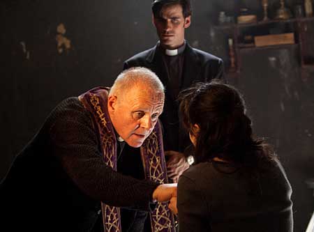 A plethora of new high-resolution images from the Catholic exorcism training flick THE RITE have turned up on the web. The images are chock full of religious imagery, moody lighting, and Sir Anthony Hopkins looking all grim, but sadly no pea soup spewing children possessed by demons. THE RITE stars Sir Anthony Hopkins, Colin O’Donoghue, and Rutger Hauer, and will be in theaters in the US on January 28th, 2011, and in the UK on February 25th, 2011.