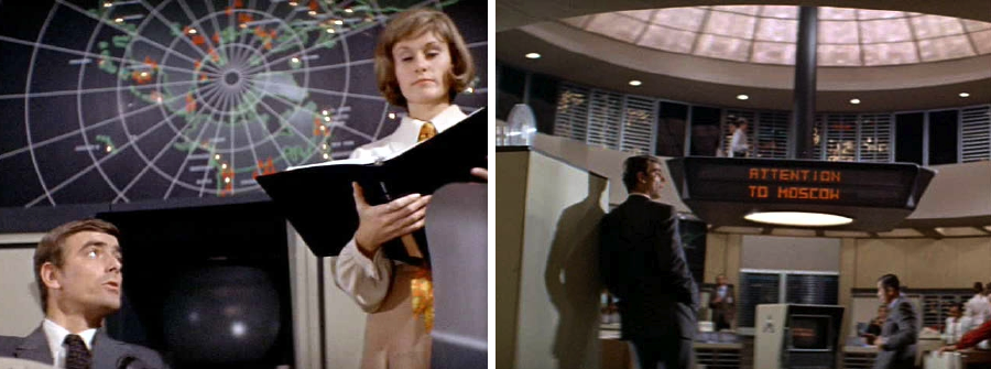 Unlike the neurotic HAL in 2001: A Space Odyssey (1968) who was more human than the astronauts, Colossus is a computer of the old school – emotionless, arrogant and practically omnipotent. When the authorities are slow to give in to its commands, Colossus takes direct control of various missile sites and threatens to destroy American cities. It links up with his Russian counterpart named Guardian, and the two of them hold the entire world to nuclear ransom. The film then becomes a battle of wits between Colossus and Forbin as the machine’s designer is the only man who possibly possesses the necessary knowledge needed to overcome the computer. Colossus knows this but, because it holds his creator in high regard, it doesn’t have him killed. Instead Colossus attempts to isolate Forbin from all outside contact and keeps him under constant surveillance with its electronic eyes and ears.