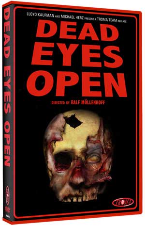 Dead Eyes Open is a 2006 German feature filmed on a shoe-string budget and on Super 8 cameras, recently aquired and released in the States by Troma Entertainment. Written and directed by Ralf Möllenhoff for R.I.P. Independent Productions, the film is an attempt to recapture the grindhouse zombie films of the Seventies and Eighties. What they end up with is a headache inducing, amateurish aberration. The movie is dreadful, rarely rising to the director’s well intended aspirations. This may be the worst zombie film ever made.