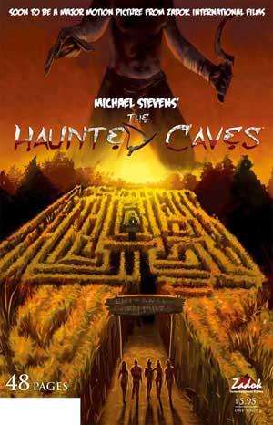 I just got my monthly comic order in and within the batch of comics that I had ordered was the graphic novel, The Haunted Caves. The graphic novel was published by the company Devil’s Due Publishing. They are the publisher who are publishing the official Halloween comics written by Stefan Hutchinson. It was funny I read an online review site that stated Stefan helped write the Haunted Caves, after being clarified with the writer of the Halloween comic book series, he was supposed to but his schedule was quite busy with cranking out the scripts to the many horrific adventures of Michael Myers, but onto the Haunted Caves.