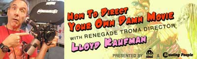 And add to that Lloyd has alot of fun with the material. On one hand there is classic Troma-isms for fans of the films…on the other, you need to ask yourself “Are you a filmmaker?” If yes, is the answer then you’ve got a complete course of training with one of the masters. Now I think it goes beyond saying that no Troma library would be complete without it………. though with 300 hours…you can’t go wrong. Let Mr. Kaufman be your guide into the smart, absurd and even cost saving arena’s