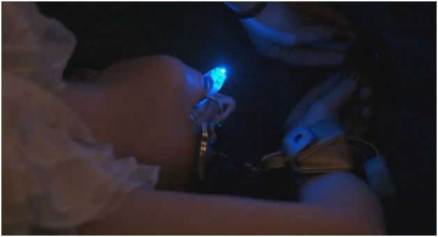 Trunk begins by showing a young woman named Megan getting off work and walking into a spooky looking parking garage. Megan is on her phone and she complains about her ex-husband and about how excited she is now that she gets to spend more time with her daughter. Straw Weisman doesn’t hold up, in fact the entire beginning sequence of Trunk is a beautiful piece of work. The parking garage is of course dimly lit, and this is the viewer’s first glimpse at the awesome use of light and color that is used throughout Trunk. After Megan gets off of her phone she starts to walk to her car when she suddenly sees’s a small teddy bear in her path. She reaches down to pick the stuffed animal up and when she gets back up she is suddenly attacked by a man and thrown into the trunk of a large automobile. The opening credits play directly after this in a really great retro fashion as the car is seen exiting the parking garage.