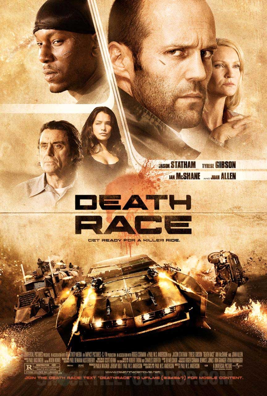 “In 2012, amid economic chaos and high unemployment, Americans by the millions watch criminals with life sentences race armored cars on Terminal Island. Two-thirds of the combatants die but the winner may earn his freedom. On the day he loses his job, steelworker Jensen Ames is arrested for his wife’s murder. Sent to Terminal Island, he’s offered an out by the steely and manipulative Warden Hennessey – race as the popular mask-wearing (but now dead) champion, Frankenstein, or rot in prison. Jensen makes the bargain. As the three-stage race approaches, he realizes that the whole thing may be a set up – can an anonymous man behind a mask get revenge and win his release?” (courtesy IMDB)
