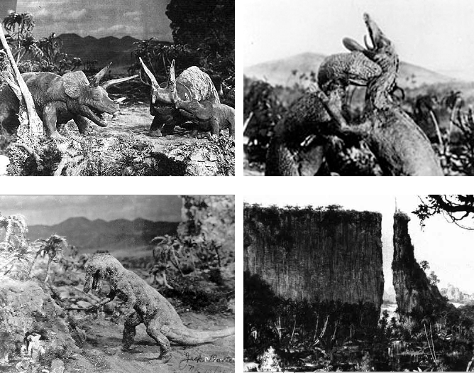THE LOST WORLD (1925): The very first in-flight movie, The Lost World is an adaptation of Arthur Conan Doyle‘s 1912 novel of the same name, and stars Wallace Beery as the excitable Professor Challenger. This version was directed by Harry Hoyt and features pioneering stop motion special effects by maestro Willis O’Brien. Many things in King Kong (1933) can be traced to earlier O’Brien projects such as The Lost World and his unfinished film Creation. For instance, the idea of a giant prehistoric monster running amuck in a modern city comes from O’Brien’s version of The Lost World, as does the log spanning a vast chasm which is then dislodged by a monster (an image used in both The Lost World and Creation), and the sequence where Kong reels in Ann Darrow and Driscoll as they attempt to climb down a vine is an elaboration of a similar sequence in The Lost World. Without a doubt, O’Brien contributed more to the overall structure of King Kong than he has been given credit for.