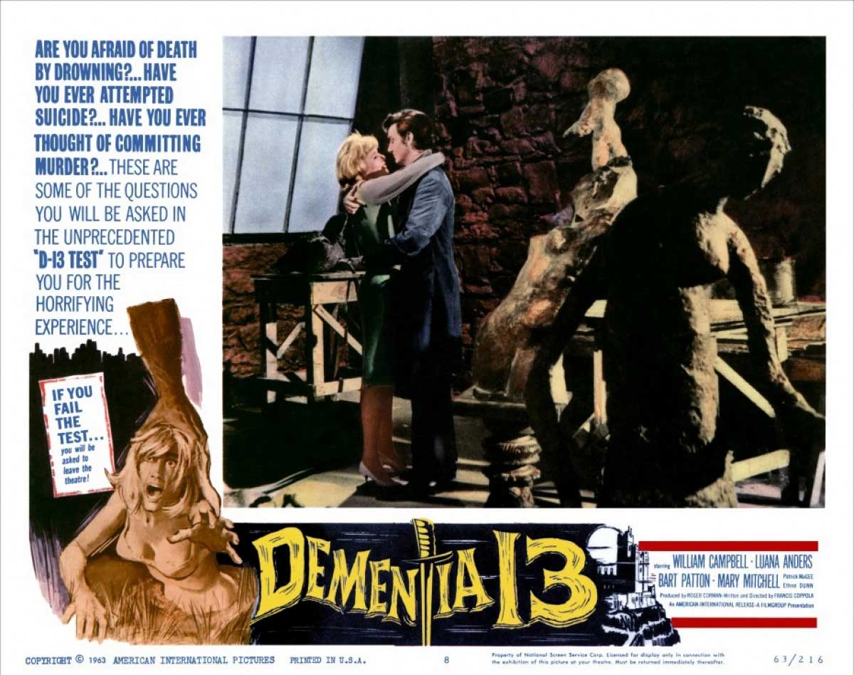 As with any emerging film trend, Roger Corman was right there at the ground level, in fact you could say he was on the basement level with A Bucket Of Blood (1959). So when Coppola came to him and said “I could take the second unit of The Young Racers (1963) and shoot a cheap Psycho knock-off in that mansion over there,” he was using two words dear to Roger Corman’s heart – ‘cheap’ and ‘knock-off’. Dementia 13 basically has two things going for it, and her name is Luana Anders. She was a popular character actress at the time, but was even better known as one of Jack Nicholson’s professional girlfriends (see, I told you I’d mention him again). She appeared in such Jack Nicholson films as Easy Rider (1969), Goin’ South (1978), and In The Hot-Tub Take 37.