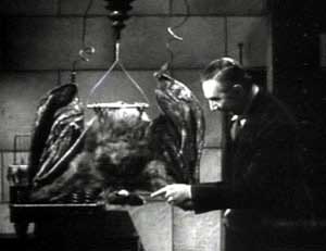 The Devil Bat is just over an hour long, though it feels a lot longer. That’s due to the fact that some scenes are a little padded. For instance, when we first meet Bela the film burns up several minutes showing him playing around with his Bat-Enlarging Mad Scientist Set, complete with spectacular and utterly pointless sparky things and big, important-looking switches. The Devil Bat itself is laughable, but ultimately forgivable. After all, its not like they had any CGI back then, and stop-motion technology was still a rare, expensive, time-consuming commodity in 1940, so when the monster attacks it’s like the victims are struggling with a starched leather coat. Knowing that Bela Lugosi would end up in Ed Wood movies emulating The Devil Bat and others of its ilk just makes it funnier.