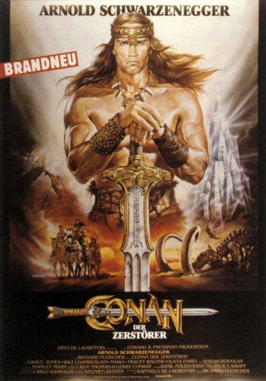 Former dancer Sandahl Bergman makes a splendidly spirited woman sword-fighter and Arnold Schwarzenegger, new to the acting game, is carefully directed so that, although wooden, he does have a dour dignity as the massive-thewed avenger Conan. Unfortunately, individually praiseworthy elements do not necessarily make a praiseworthy whole. Apparently, Dino cut twenty minutes out of the film before release, diminishing the gore, no doubt with an eye on the family audience, and this may well have damaged it.