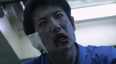 Keiji Inafune (producer of many a video game including, of course, Dead Rising) does a good job directing the mayhem. Given the budget restrictions, there is an ample amount of blood and gore. The acting is decent as well, with the aforementioned bad guy stealing every scene he’s in. What really makes this film work, though, is the relationship of George and Shin. Two brothers who would do anything for each other, and the film does an excellent job of showing this dynamic early and often.