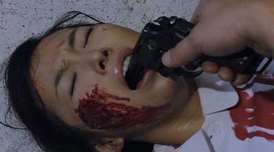 But this warehouse also happens to be the home of a small gang consisting of three guys and a girl. And they don’t appreciate George and Shin coming into their territory. Their leader is one bad mother complete with a maniacal laugh and over the top facial expressions. In short, he absolutely makes this movie, with some of his dialogue being way over the top. From here we start to fall into the usual zombie routine as they break into the warehouse and wreak havoc with our cast.