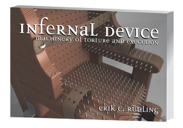 Infernal Device, Erik Ruhling’s book of ancient elaborate torture devices, released by Disinformation Press, contains illustrations and descriptions of many awful (depending on your point of view) torture devices. Ruhling has created 3-D graphic images of the torture devices, letting us see some of them for the first time. The illustrations are at the same time beautiful and terrifying.