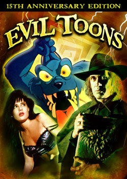 David Carradine stars as Gideon Fisk, an evil wizard of sorts that comes back from beyond to unleash some horny, nasty cartoons onto the ladies. His main instrument of choice is an old spell book that looks alot like the Necronomicon from the film “Evil Dead”. By delivering the book to the girls he actually tricks them into reading from it to release some of the evil.