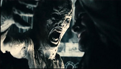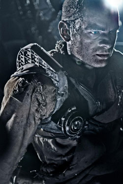 It seems that its infested with “Doom-like” creatures that appear now and then with violent intentions. He also meets a few acquaintances along the way who give him shards of information. Though it appears that whatever once was has gone way to chaos. The origin, this strange plant that they have sucked energy from . Apparently the plant has set up a defense system which is turning folks into subterranean creatures. Now that all sounds kind of exciting, but really this is a pretty droll film. You would think that after the extended intro with flashes of light and dark that it would break into some action and excitement. The excitement really never comes with t he exception of a few creep fights. The most testing element is the modern color scheme the films makers chose to use in this film. Mostly gray scaled with blue and green colorization, it is a bit too much to really see past. Even sci-fi films who use this color scheme give us a break in contrast and slight color variations. The problem here is that the contrast is too contrasted, so on top of a confused plot, you also are somewhat blinded to everything to be seen.