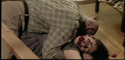 Apparently some zombies can be killed with a lame karate kick which is executed more like a soft ballet. In other scenes, a shot to the chest does the trick or a knife to the eye. Though this confuses the rules a bit as we see scenes where half dismembered bodies still crawl towards there prey. So this asks the question …..if a shot to the chest kills them, does cutting the body in 2 not? It’s ok, there are several zombie flubs like this thoughout.. too many to mention really. In a comedy scenario this would work, though “Evil” is not intended as comedy. So word to the viewers, don’t over analyze or it will spoil the fun. All in all this film was basically a set up to create some flesh easting zombies. Even the cause was a bit of a mystery..though the film doesnt dwell on that and just gets on to zombie killing. There’s alot of a meet new folks and die situations though out. So characters never entirely receive major focus. Theres a pretty funny scene that involves feet licking that gives soem occasional comic relief.