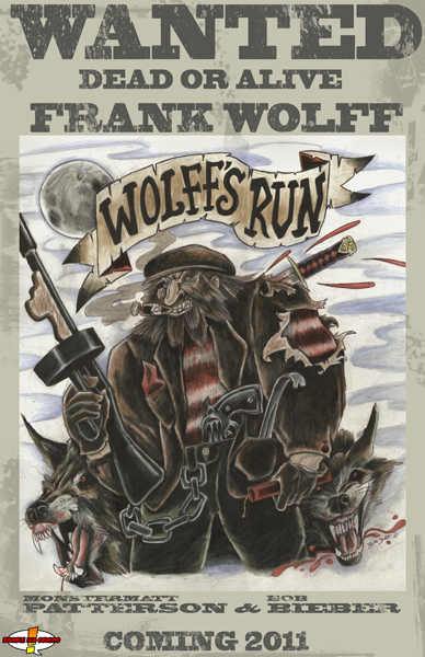 Buffalo, NY January 19, 2011 – Buffalo-based independent comic publisher Zombie Ink Comics is proud to announce that they will be releasing Wolff’s Run written by MonsterMatt Patterson (MonsterMatt’s Bad Monster Jokes Vol. 1) and illustrated by tattoo-artist Bob Bieber. Zombie Ink is shooting for a mid-2011 release for the three issue mini-series.