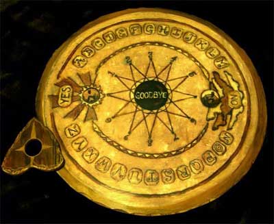 The Ouija created by April Burril for the film is a work of art. A circular board, a geometric itself representing infinity, feminine natures, and the ability of consciousness to transgress these barriers, has a twelve pointed star surrounded by letters transliterated into witches runes. The connection formed between the sister’s bodies and the board as an inanimate medium of spiritual creates an impressive visual of evocation.