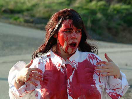 In addition to acting in and producing The Resurrection Game, Amy served the film as art director, additional photographer and craft services. On one shooting date in particular, she fed the cast and crew two specially-made lasagnas, then denied herself her own nourishment due to the fact that she still had to go before the camera in a skin-tight leather-and-spandex costume.