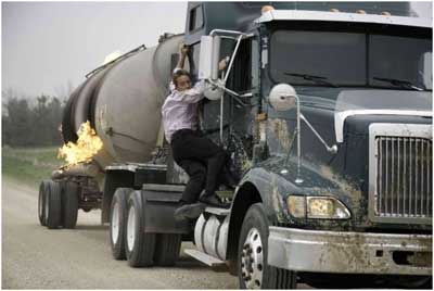 After everything starts to settle however the main worker, a guy who calls himself Boomer, begins to notice that the ground still is shaking. Before Boomer can yell for his men to get to safety the ground opens up right where the men are standing sucking them down inside of the Earths surface. Boomer curses his bad luck and then gets into his truck and starts to drive away while fissures created from the earthquake chase his vehicle. Yes I said it correctly the fissures chase after him, this happens quite a few times (I can think of three without looking at my notes right now) and yeah it is pretty ridiculous but again it doesn’t make the film bad in fact the ridiculousness of the situation really does make the film enjoyable. Boomers truck suddenly gets stuck because of these stalking fissures and soon his truck is swallowed up into the ground as well.