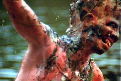 Savini asked me not to show the new mask to anyone until after the shoot, so when I jumped up out of the water on the first take, my dear friend Adrienne King, playing Alice, jumped clear out of the boat and into the Lake with a yell! She was then dried off and her hair blow-dried so that we could resume shooting. We got it right the second take, and to her credit, Adrienne looks totally oblivious to the fact that a deranged child covered in pond scum is about to grab her and drag her under. She can ACT!