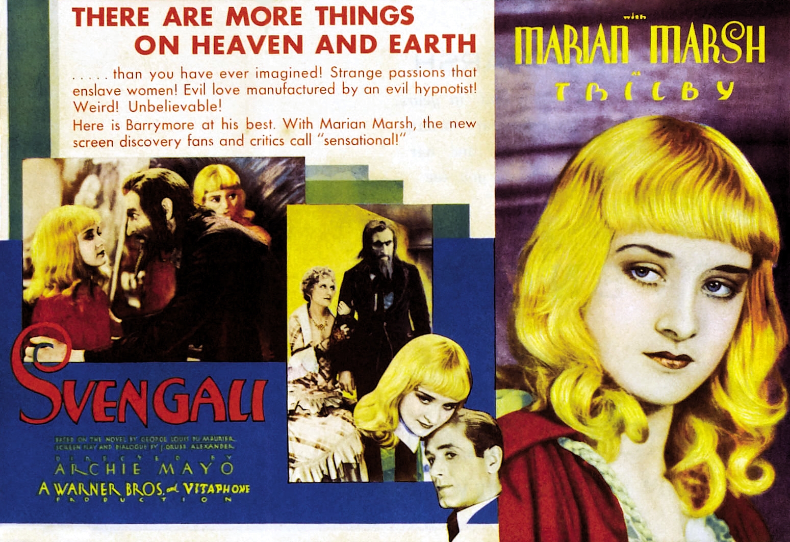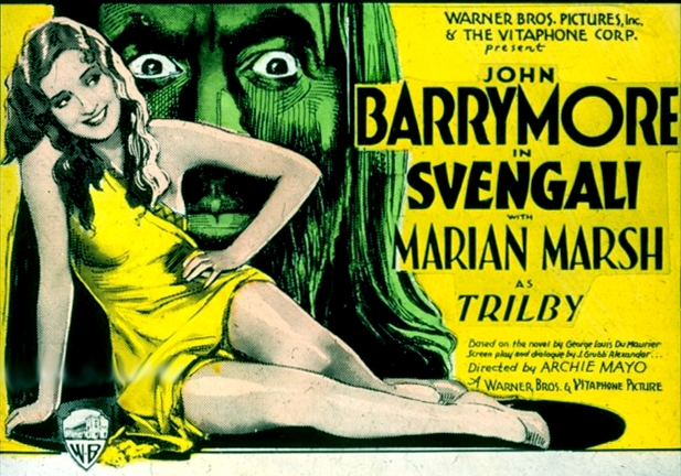 This week I intend to prove wrong all of you who say high quality films are not to be found in the Public Domain, by discussing Svengali (1931). This dusty gem is the best of several versions of George Du Maurier‘s novel Trilby. The character was so well known that the word Svengali, meaning an Evil Mentor, entered the language, but has sadly gone out of use in recent decades.