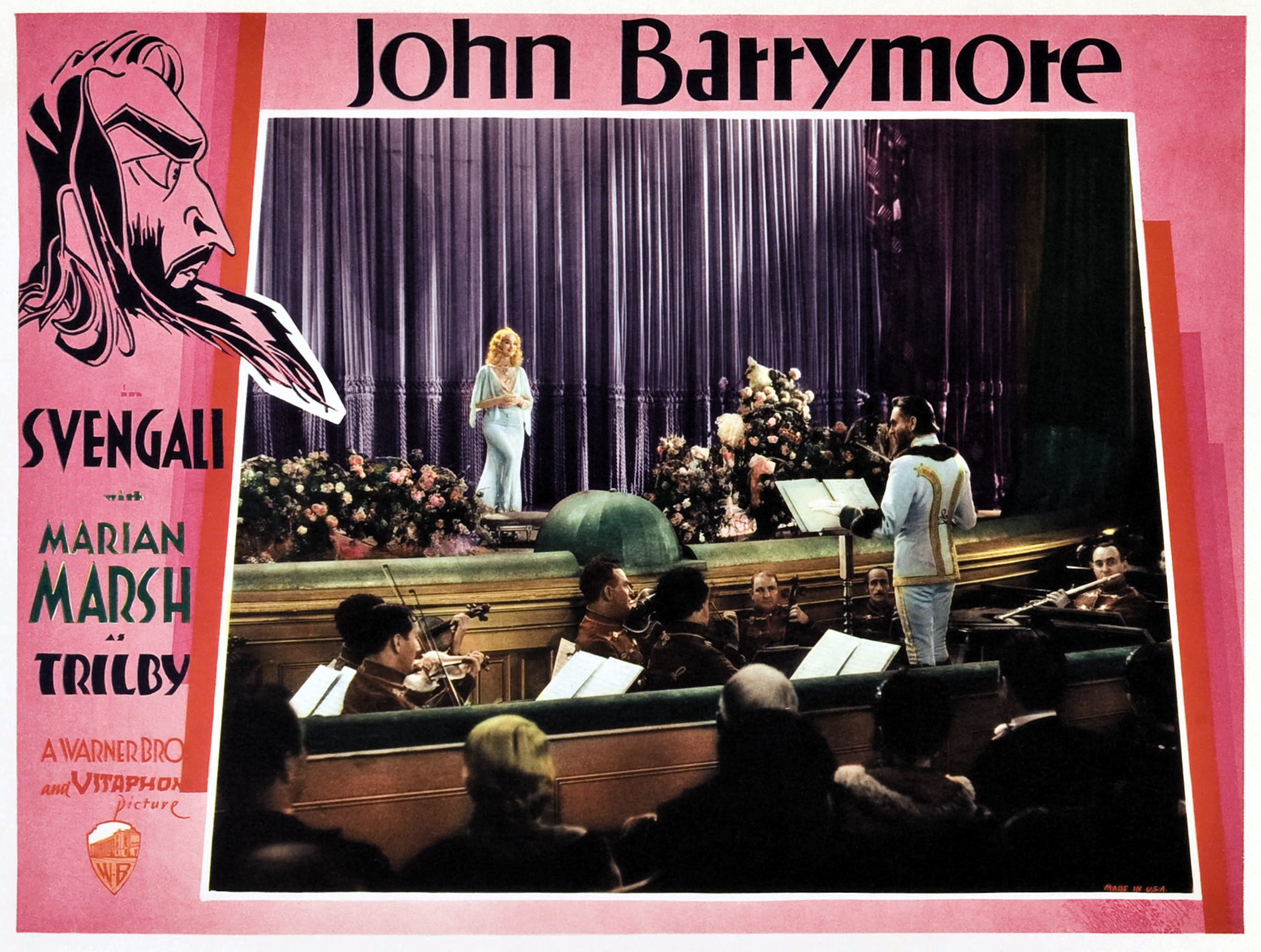 Portraying the sinister Svengali is my old friend John Barrymore, one of the most fascinating characters in film and theatre during the last century. He was son of stage actors Maurice Barrymore and Georgiana Drew Barrymore, and his siblings Ethel and Lionel also had extensive film careers. John made his stage debut in 1900, and quickly became a matinee idol. He entered films in 1913, thanks to the invention of the cinematograph, and although he eventually gave up the stage, it was really his first true love. His Hamlet was widely acclaimed and plans were made to film it, but they came to nothing.