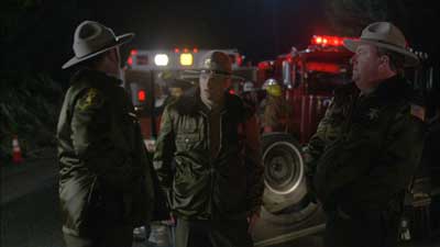 As if the life of a small town sheriff can’t be sh*tty enough sometimes, what with speeders, drinkers, thievery, jumping through the air while firing two guns at once, firing his gun up in the air while screaming “AAAARRRRGH”, and incurring incredible amounts of paperwork and whatnot to keep him busy, life really sucks for Sheriff Pat Baker. First his young son bludgeons Mrs. Baker to death on the day of their daughter’s birthday party, but then years later the son pulls a Myers and escapes from the local psychiatric hospital and starts making his way home with one thing on his mind, and I’m betting it’s not dinner at the local In N Out Burger…
