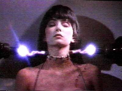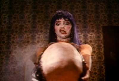 Frankenhooker tells the story of Jeffrey Franken a young electrician and medical school drop out (actually word is he got kicked out of them) who in his spare time tries to animate objects and give them a life of their own. In the first few seconds of the film we see one of his projects, it kind of looks like a brain with an eye in the center of it, he is trying to get it to respond to his commands but his wiring is not quite right and of course everything begins to fritz. Jeffrey is a rather strange man, while he is playing with his “creation” his fiancé’s family, the Shelly’s (get it!), are celebrating a birthday party for Elizabeth’s father; Elizabeth is of course his fiancé who in a very early scene admits to letting Jeffrey perform surgery on her in order to lose weight. Elizabeth is played by former Penthouse pet Patty Mullen, and in the beginning of the film she is shown wearing a fat suit, though it is only implied Elizabeth obviously isn’t the happy one about her body type.