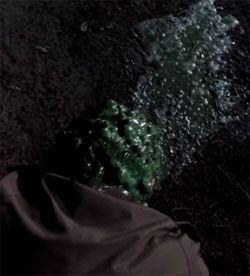 Ash arrives home to find oozing green puss, and then has trouble sleeping later. Props to the very budget special effects here. With the exception of the hoses being used for some of the spew effects, they look pretty good. The bubbling & oozing infection is effective enough for suspension of disbelief.