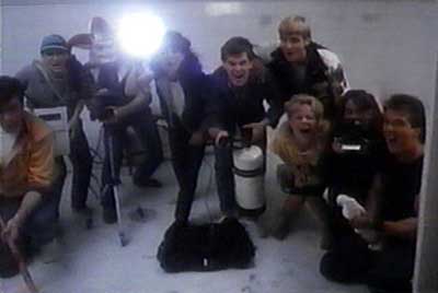 The alumni finally make it to a room where someone has placed each of their lockers. Inside each of their lockers is something from their high school days, these items range from a pair of dirty smelly shoes, to a pair of gloves lost on prom night (it wasn’t the only thing she lost that night according to her classmates). Marty’s locker is also in there, but Marty isn’t part of the group that is there now. Inside of his locker they find his yearbook and as they flip through the pages they are told about the fate of poor Marty. They are told how Marty went insane because of his disfigurement and broke out of the insane asylum. The bad news is, this April Fools joke is about to be pretty brutal. The good news is obviously on April Fools Day here the pranking stops at noon.