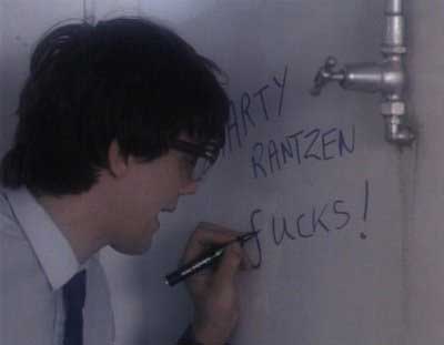 The pranks continue on the poor guy. In the span of a few minutes we are treated to seeing Marty get a swirlee, smoke a joint laced with poison and the final nail in the poor guys coffin a container of acid falls on his face disfiguring him, once again in front of the whole class.