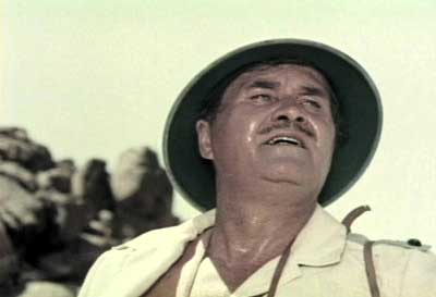 As I noted earlier, the scoundrel responsible for Eegah is Arch Hall Senior. He started as an actor in Overland Stage Raiders (1938), one of the eighty-or-so B-grade westerns John Wayne made in the thirties, but best remembered for being Louise Brooks’ final film. She decided if she couldn’t get better offers than this, she might as well abandon her acting career, and Arch would have done well to follow her example. Instead, he had minor roles in several B-grade westerns in the forties. Eegah was his only film as director, for which he hid behind the lie Nicholas Merriwether. He also played the part of Robert Miller, under the name William Watters. We understand why he didn’t want to own-up, but we’ve exposed his deception all the same – it was our moral duty. Yes, that’s him wearing that silly safari suit and pith helmet. Even his costume decisions were bad – except for Roxy’s swimsuit, of course.