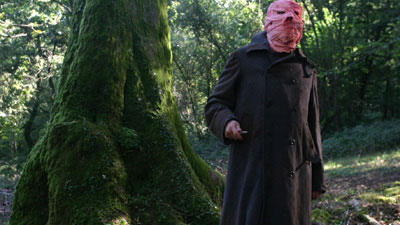Hector is an ordinary man who’s moving to a new house with his wife. One evening, while he’s looking through his binoculars, he sees a naked girl in the woods. He decides to go there just to find that same girl laying on a rock. Suddenly, a man with a pink bandage covering his face, stabs Hector in his arm with scissors. Then a chase starts, leading Hector to a time machine that brings him back nearly an hour in the past. The man in charge of the time machine explains to Hector (Hector 2) that he must not interfere with the other Hector (Hector 1) so he can go into the time machine again. Things complicate, and Hector 2 is hit by a car, injuring his face. To stop the bleeding, he covers his face with a bandage that turns into pink because of the blood. Then Hector 2 realizes he has to stab Hector 1 and chase him to the time machine in order to make things right.