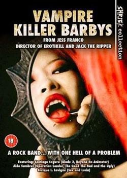 Director Jess Franco is back to his old tricks with this gruesome gore-fest about a band called The Killer Barbies (played by the band of the same name) that gets stuck in a remote locale when their transportation breaks down. Eager to get back on the road, the group searches on foot for help. Instead, they run into a bloodthirsty sorceress, Von Fledermaus (Mariangela Giordano), who’s about to make their lives much worse.