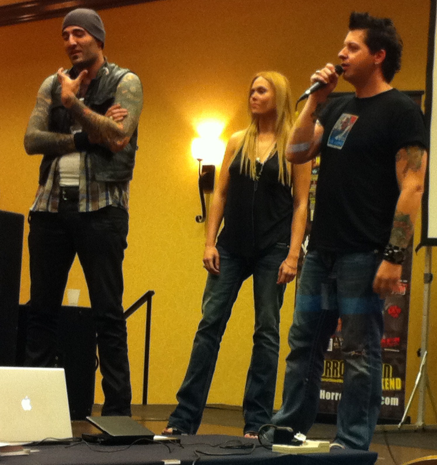 This was his first convention appearance and seemed a bit quiet at first but his enthusiasm for the character really began to shine through during the panel discussion where they premiered two clips from the film, one of which featured Brian Austin Green as an accomplice to Chromeskull who only communicates to him through a computer. Green’ character wants to be in on everything. There is also a captured young lady who appears as if she will be a victim. The second scene featured Chromeskull in action, a terrific murder scene with a rather gruesome knife to the side of the face. Robert explained that the new film picks up directly where the first ended and that they spoke with doctors about the possibility of face reconstruction. If you have seen the first film then you would know why, the doctors told them it was possible, since a man in Russia had his face completely torn off and survived. This film is something I am really looking