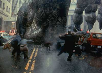 When a freighter is viciously attacked in the Pacific Ocean, a team of experts — including biologist Niko Tatopoulos (Matthew Broderick) and scientists Elsie Chapman (Vicki Lewis) and Mendel Craven (Malcolm Danare) — concludes that an oversized reptile is the culprit. Before long, the giant lizard is loose in Manhattan, destroying everything within its reach. The team chases the monster to Madison Square Garden, where a brutal battle ensues.