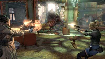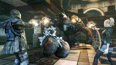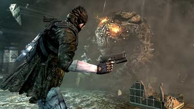 Konami Digital Entertainment, Inc. today unveiled new screenshots and key art for its all-new original IP, NeverDead for the Xbox 360® video game and entertainment system from Microsoft and PlayStation®3 computer entertainment system, slated to launch in fall 2011. The images reveal the explosive action and combat as the game’s hero and his female companion, Arcadia, take on the horrific, otherworld demons of the future.