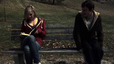 Mannequin in Static upon first impression is at its core a 2 act story. Although the stories run into each other, you might find yourself jarred at going from one premise to another. The first premise is based around Alex, the new kid in town. Relocating to a new area with his mother is hard enough after the split. Alex (Jeremy Hayes), a basically shy, and somewhat reclusive boy has to start over with a new school and new acquaintances. On the surface, everything seems pretty normal. He writes alot, daydreams and finds interest in a girl he meets named Ashley. The film itself tends to move slowly… though it’s purpose is to establish a romance story between Alex and his new best friend Ashley. Ashley (Ana Gilmore ) is a likeable pretty girl, who is as sweet as she is easy going. They hit it off pretty quickly after meeting at a local party in which they find they share alot in common. MIS documents the 2 as they date, attend local events and find new ways to hsare time together.