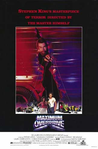 Hell-o, everyone. Greetings from The Dixie Boy Truck Stop of North Carolina. Buckle your seat belts, ladies and gentlemen because “Jesus has come and he is pissed.” No one is safe as the tail of a comet passes over the Earth, engulfing the planet in green smog. While under the comet’s seven day reign ATM machines and bank teller signs, along with burger drive-through signs verbally taunt the human race. The worst has yet to come… Draw Bridges, house hold appliances, sharp electric kitchen objects, remote control cars, video arcade games, gas pumps, soda machines, bulldozers, steamrollers, airplanes, ice cream trucks, lawn mowers, military vehicles and most and worst of all, eighteen wheeler mac trucks… “HELL’S BELLS.” That’s right, mother truckers, it’s Maximum Overdrive. The master of Horror, Stephen King’s first film to ever direct. As he states in the preview… He just wanted to see Stephen King done right, and if you’re going to do something right… You have to do it yourself.”… The words of a (and THE) King. He then goes on to state… HE IS GOING TO SCARE THE HELL OUT OF YOU (as Mr. King points directly at us, the viewers. This film asks the question burning question… “who made who?” as one waitress named Wanda answers with her last few breaths… “we made you! You pa-yuky thangs! We… made… you!!!!”