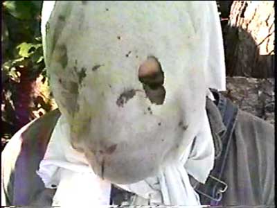 The Corn Stalker you say? Well never let it be said that HNN only reviews studio produced movies, as generally films fall into 3 categories. Studio (bug budget), independent or micro budget. Though “The corn Stalker” actually doesn’t fall into any of those. Yep, we even get what I call home spun, which is 1 or more first time film makers who pick up a video camera and shoot. This film manages to even look dated with it’s VHS footage and analog color bar creeping in at the bottom.