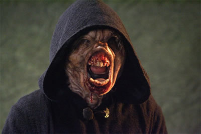 There are a number of disturbing visuals that help The Shrine succeed: the shrine in the fog bank, the cult ceremonies and the gruesome kills. About midway into the story, Carmen, Sara and Marcus make their way into the secluded forest just outside Alvania chasing down a mysterious mist that doesn’t appear to move. Carmen and Sara make their way into the fog and encounter the titular shrine. At this point, The Shrine lets you know clearly what you’re in for – some supernatural hi-jinks. The shrine is exceptionally creepy and well done, chilling and haunting. Later, the group witnesses the Alvanian cult perform their middle age ceremonies where they slash open as their victims’ legs and arms and then hammer a spiked mask into their faces. Cringe worthy stuff. Later the film slips into Evil Dead territory when the true evil is unleashed and begins ripping apart a family, whose home our heroes are hiding in, and the Avanian monks who crash the demonic party. The killings are bloody and effective.