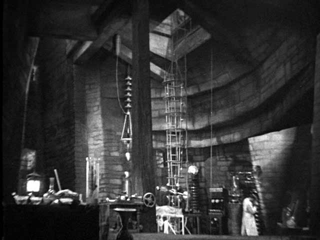 James Whale‘s adaptation of Frankenstein (1931) is probably the first American film to use the glass matte painting effect. A glass matte involves an artist painting a realistic background onto a sheet of glass, leaving a space blank where the action will take place. When re-photographed it can look flawless, depending on the talents involved. Whale’s primitive use of the matte in Frankenstein was later perfected and taken to new levels in Star Wars IV: A New Hope (1977).