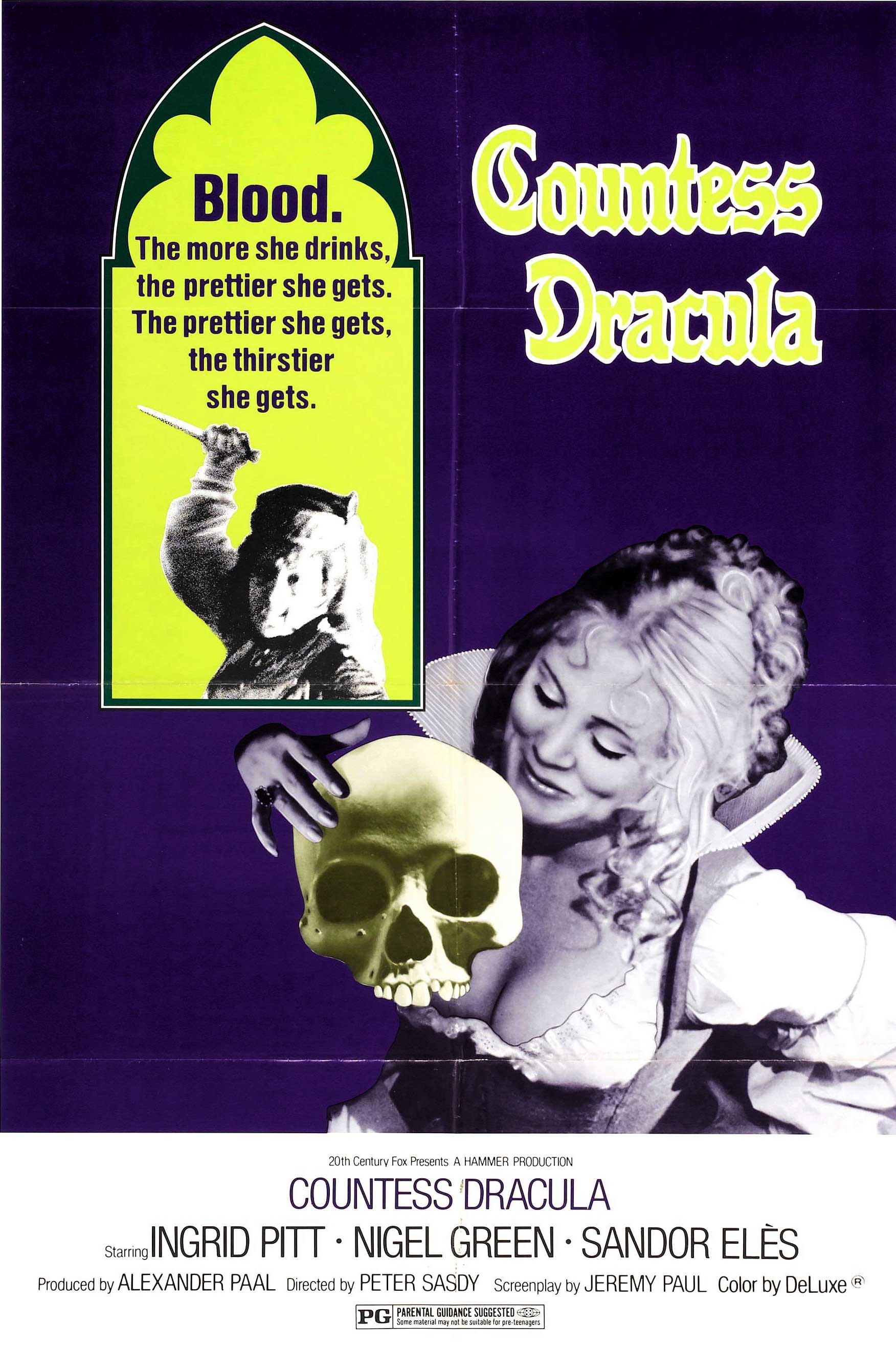 Based on the historical exploits of Countess Elizabeth Bathory (who bathed in the blood of virgins to keep her young and beautiful), the evocatively titled Countess Dracula (1971) failed to deliver despite the presence of Hammer hottie Ingrid Pitt. However, Twins Of Evil (1971) quickly returned to the popular swell of breasts and blood with twin Playboy playmates pursued by a posse of witch-hunting Puritans led by Pete Cushing.