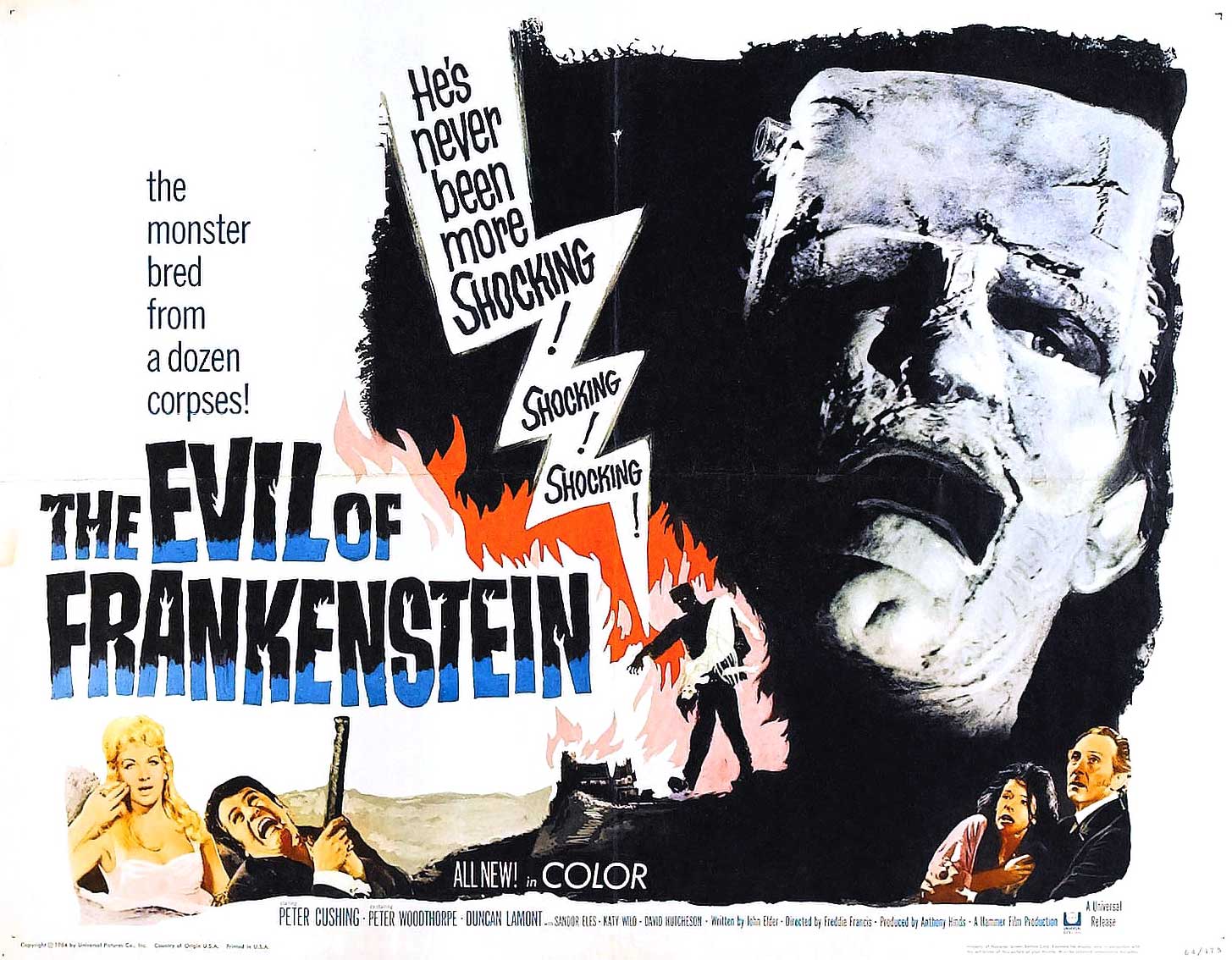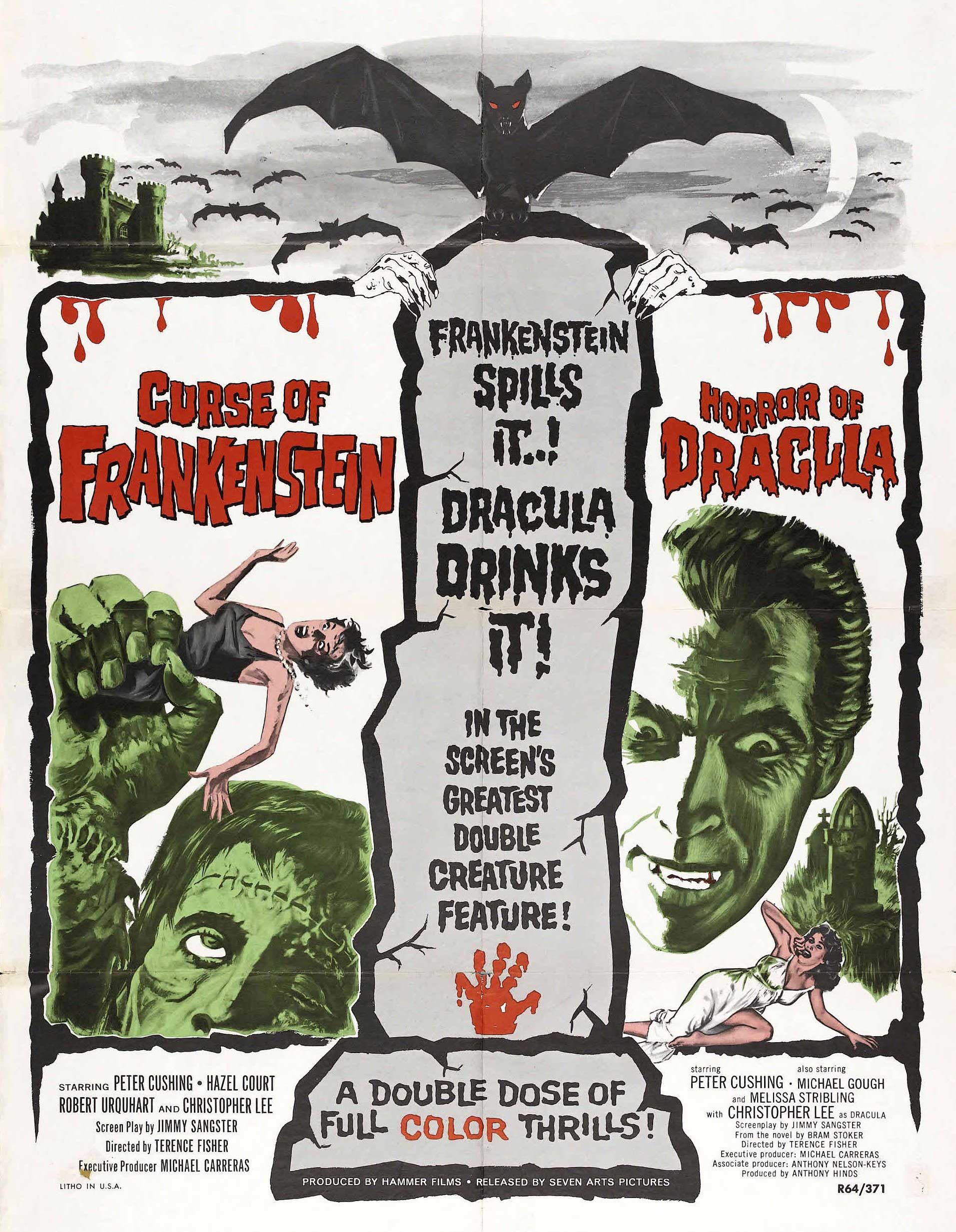 Following Quatermass II (1957) and The Abominable Snowman (1957) also scripted by Kneale, Hammer would plunge headfirst into the genre, resurrecting one of horror cinema’s most enduring icons for their seminal period shocker The Curse Of Frankenstein (1957). Starring Peter Cushing as Baron Victor Frankenstein and a then-unknown Chris Lee as his monstrous creation, The Curse Of Frankenstein was an instant hit that made Hammer, Chris and Pete into household names.