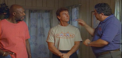 With Jason Voorhees securely floating around in the vacuum of deep space, you thought it was safe to go back and enjoy a nice summer of archery, waterfront activities and fornication. Sorry kids, but Jason wasn’t the only homicidal maniac stalking campers in the 80’s. Yep it’s another Sleepaway Camp. Returning to the helm and completely ignoring (from what I can tell) the 2 previous installments, is original writer/director Robert Hiltzik. Returning with him is counselor Ronnie, (Paul DeAngelo) and cousin Ricky (Jonathan Tiersten), along with new (and head scratching) additions Isaac “The Duke of New York” Hayes and Vincent “Big Pussy” Pastore. Mixed in around them are some semi-familiar faced counselors and a gaggle of variously talented and annoying children.