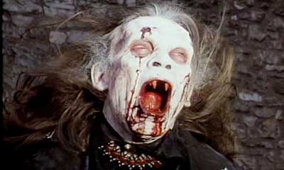 The main vampire in the film (and the entire series) is a vampire named Radu. Radu isn’t a pretty boy dressed up like a member of Duran Duran, nor is he an emotional creature. Thankfully Ted Nicolau delivers us a vampire that meets up to all of our nightmares. Radu doesn’t even look human, his skin is white and his features are twisted into that of a monster. His mouth is full of razor sharp fangs and he constantly seems to be drooling fresh blood out of the side of his mouth. His fingernails are also exceptionally long, which leads to an unintentional funny swordfight near the end of the movie. When Radu speaks his voice is a harsh whisper, and luckily he delivers most of the best lines in the entire film.