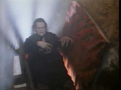 Like most vampires of film Radu is scared of sunlight (even though there are a few scenes where Radu is walking around and it is obviously not night time) and apparently crucifixes and stakes through the heart also take care of the menace he also sleeps in a coffin and it is implied that the vampire does indeed have to sleep in their own crypt lest the sun destroy them. Radu doesn’t change into a bat or anything like that but he can turn into a shadow and travel very quickly from place to place, there is one scene where this power is capitalized into a great scare!