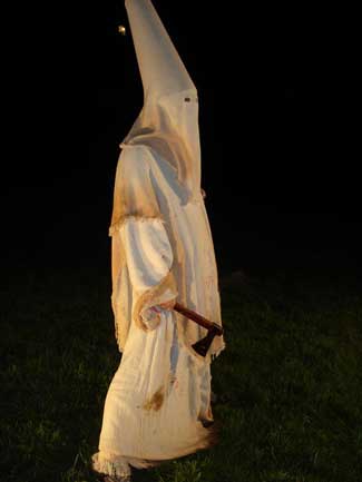 From the very get go Isaac Williams 2009 feature film (clocking in at 117 minutes) lets you know that it is going to be rollercoaster trip. The film gets your attention right away as a man, who is only listed in credits as the Mind, is obviously doing some magic in the dark arts variety. During this sequence he is seen painting blood onto naked woman, the whole scene gave me flashbacks to the European exploitation films of the 1970’s and this isn’t a bad thing. After a few scenes of this suddenly a group of bad guys show up to ruin his party, did I say bad guys I meant to say the notorious bad guys known as the Ku Klux Klan. The Klan storms into the house and drags the man outside, they are then shown using an ax to sever his arms and legs (all while the poor guy is alive) and finally finish with his head. The credits roll and the viewer is left with only those fantastic images in their own minds for a few minutes.