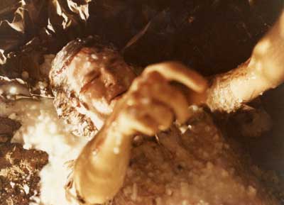 “The Strangeness” drags on for most of the film with alot of cave conversations and a few fights to deal with. Though as they push forward they are forced to find a new exit when the cavern caves in blocking the return exit. Sloppy goop begins to show up leading up to the creature that they will eventually encounter. This creature which is just plain odd, borrows a few ques from Cthulhu and some silly stop motion animation. Its appearance itself is pretty silly as it sort of looks like a 1 eyed worm caterpillar alien beast. The movement though might draw slight comparison to the “Evil Dead” movies. (which used the same approach)