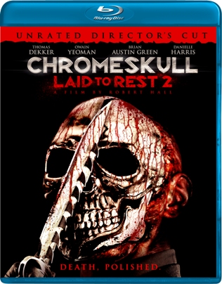 Bonus features on ChromeSkull: Laid To Rest 2 Blu-ray and DVD include audio commentary with director Robert Hall, co-writer Kevin Bocarde, and star Brian Austin Green, “A Cut Above: Creating ChromeSkull” behind the scenes featurette, the “Jump To A Kill” function (available exclusively on the unrated Blu-ray™ and DVD) where viewers can jump directly to one of eight “kills,” deleted scenes, bloopers and the theatrical trailer.