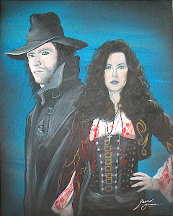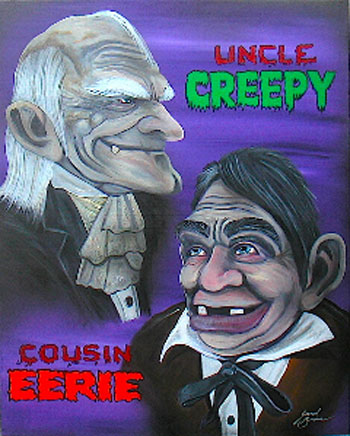 Jerrod is a self taught left-handed traditional artist who has been painting and drawing nearly his entire life, everything from murals to illustrations. He paints and draws from his studio at home. As recently as ‘Scream Fest 2007’, Jerrod met and was inspired by one of his childhood idols “Famous Monsters of Filmland” magazine cover artist ‘Basil Gogos.’ From that day forward, he has pursued his love of painting in the horror genre and film monster portrait art. Jerrod currently resides in Jacksonville Florida with his wife Linda and daughter Evelyna. His work can be seen at www.myspace.com/jerrodbrown . He also sells original paintings, prints and commissioned work from his home studio and at conventions.